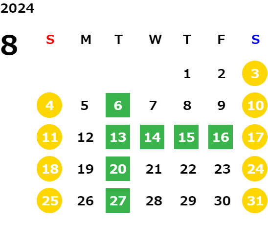 8/12(火)~17(日) 「夏季休業のお知らせ」