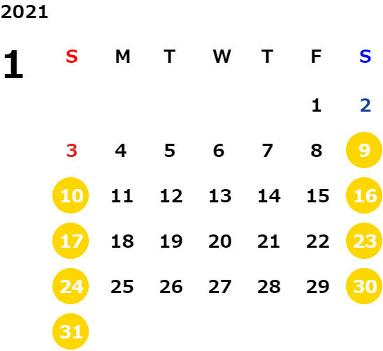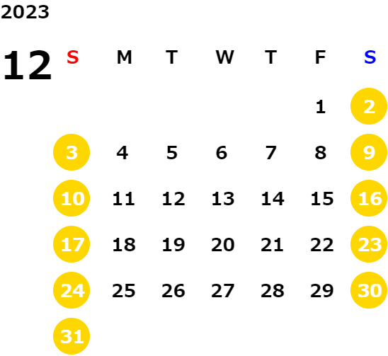 営業日カレンダー